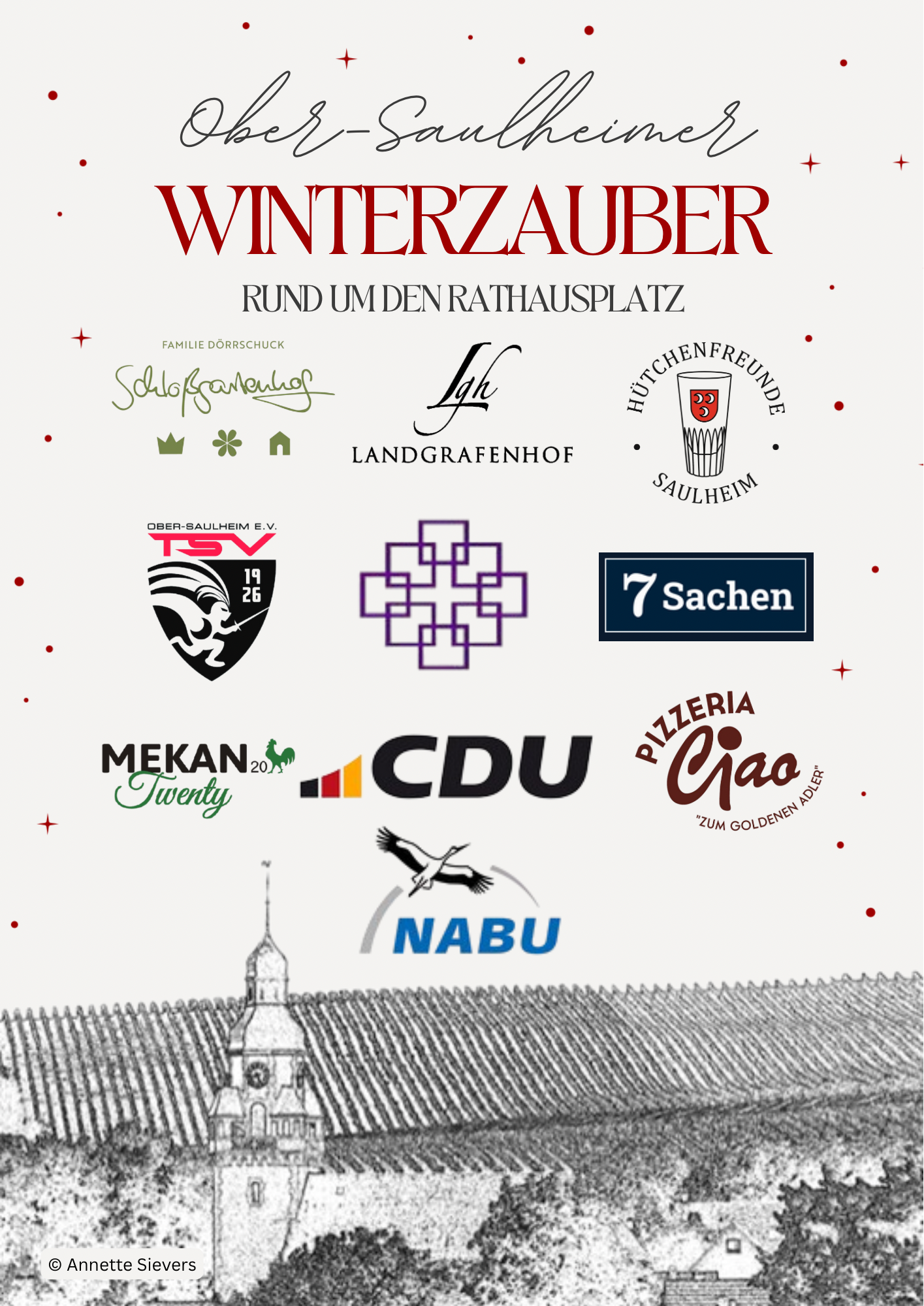 Am Samstag, 29. November, und Sonntag, 30. November 2025 lädt die Ortsgemeinde Saulheim herzlich zum Ober-Saulheimer Weihnachtsmarkt „Winterzauber“ ein. Rund um den Rathausplatz, die Evangelische Kirche und die Untergasse entsteht an diesem Wochenende eine stimmungsvolle Adventskulisse mit festlich geschmückten Ständen, Kunsthandwerk, weihnachtlichen Köstlichkeiten und gemütlichen Treffpunkten.