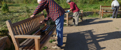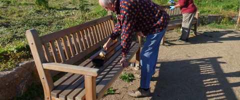 Bänke streichen in der Mühlbachaue