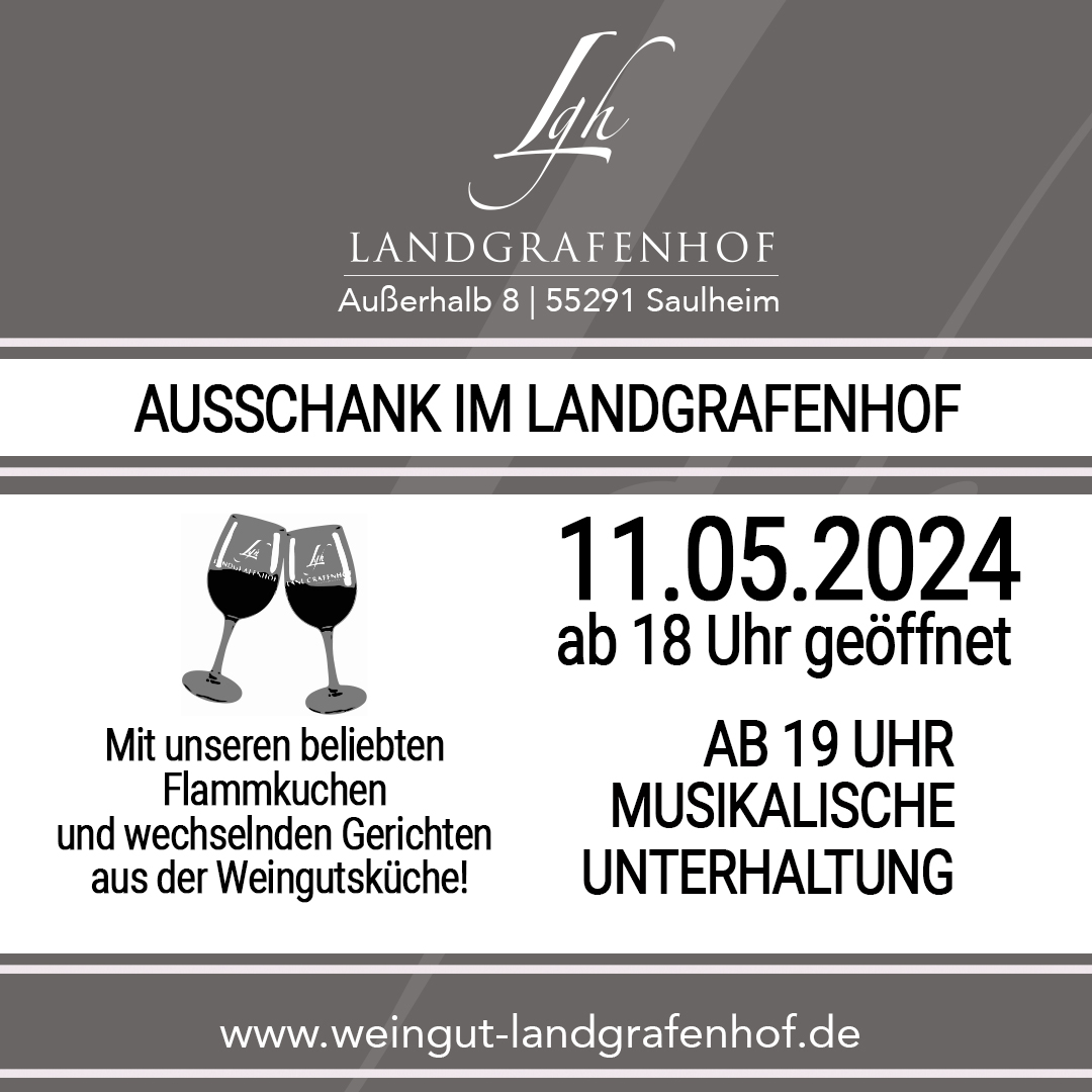 Mit unserem beliebten Flammkuchen und wechselnden Gerichten aus der Weingutsküche – sowie Wein vom Weingut Landgrafenhof.
