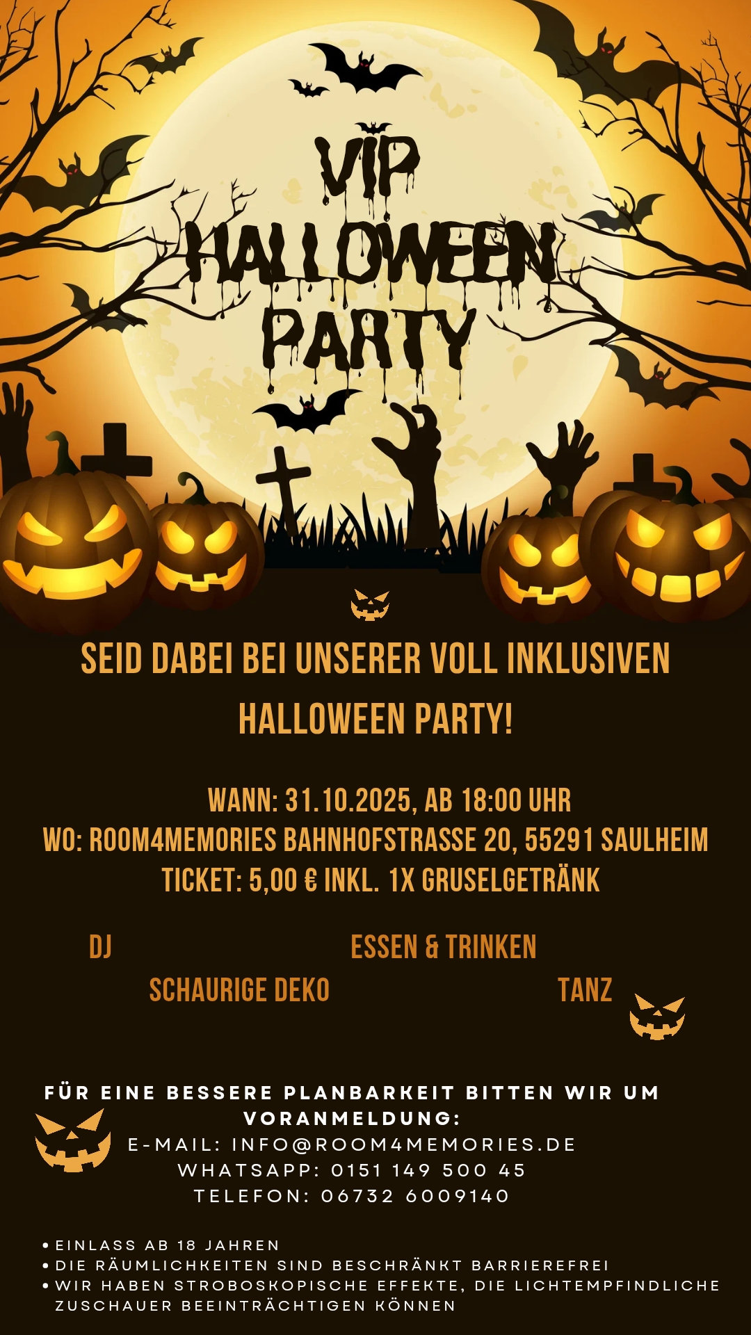 Miteinander feiern, Spaß haben und lachen 🎃🥳 – Am 31.10.2025 öffnen wir unsere Türen für unsere VIP Halloween-Party für Menschen mit und ohne Behinderung.