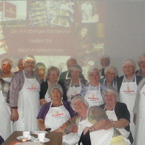 Natürlich hatten die Neukirchener wieder Leckereien aufgetischt und nach der langen Anfahrt zum Essen eingeladen. Danach ging es jeweils zu den Gastfamilien. Am 3. Oktober ging es dann zusammen mit einem Bus, den die Neukirchener geordert hatten nach Annaberg-Buchholz in die „Stollen-Bäckerei“.