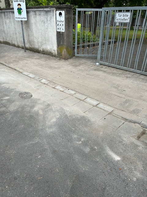 Um den Zugang zum Friedhof in Nieder-Saulheim für alle Bürgerinnen und Bürger zu verbessern, wurde der Bordstein am Haupteingang abgesenkt. Diese bauliche Anpassung ermöglicht es insbesondere Rollstuhlfahrern und Personen mit Rollator, den Friedhof sicher und ohne Hindernisse zu erreichen. Mit dieser Maßnahme setzen wir einen weiteren Schritt in Richtung Barrierefreiheit und tragen dazu bei, dass der Friedhof für alle gut zugänglich bleibt.