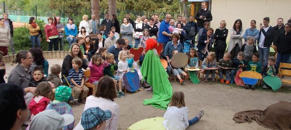 Die Kinder sangen, tanzten und spielten ihren Eltern ein breit gefächertes Repertoire vor. Die Sternengruppe und die Vorschulkinder führten sogar ein Theaterstück von der „Raupe Nimmersatt“ auf. Alle Eltern, Verwandte und Bekannte waren begeistert. Nach ein paar Worten von Herrn Dr. Bachen und einem schönen Lied über das Wasser von Herrn Fölix, wurde das reichhaltige Buffet gestürmt.