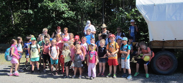 Zum Auftakt der Saulheimer Ferienspiele startete der Dorfverein mit 34 Kindern zum Erlebnisbauernhof Höhenhof im Hunsrück.