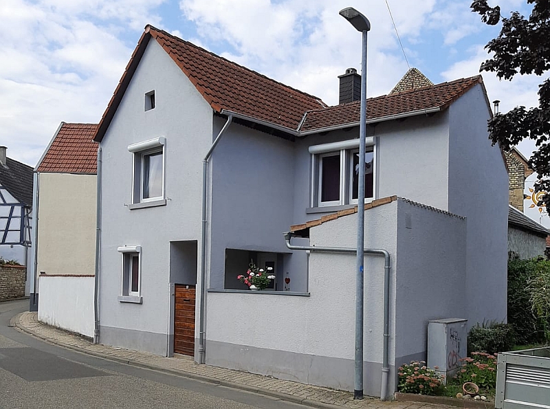 Kleines 60 qm Haus im Zentrum von Saulheim. Wir bieten 2 Doppelzimmer, Wohn-Essbereich, komplett eingerichtete Küche und Duschbad.