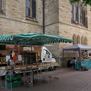 Die Vielfalt auf dem neuen Wochenmarkt in Saulheim ist bunt: Neben Lebensmitteln wie Käse, Wurstwaren, Fleisch, Obst & Gemüse, Brot, Gebäck, Feinkost Freilandeiern und Honig reihen sich z.B. unverpackte Lebens-, Kosmetik- und Reinigungsmittel (nur alle zwei Wochen). Dazu gesellen sich Wollprodukte und Kunsthandwerk.