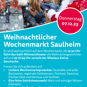 Am 2. Juni 2022 fiel der Startschuss für den neuen Wochenmarkt in Saulheim. Jeden Donnerstag von 11 -18 Uhr wird der schön gelegene Marktplatz am historischen Rathaus zum neuen Austausch-und Einkaufs-Treffpunkt für Jung und Alt.